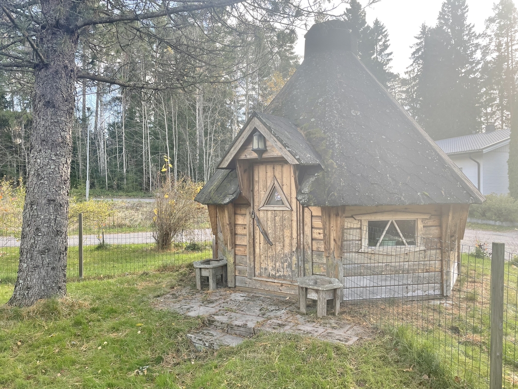 Pihapiirissä sijaitseva grillikota kutsuu viettämään iltaa ympäri vuoden. Sijainti päättyvän tien varrella on erinomainen paikka lapsiperheelle.