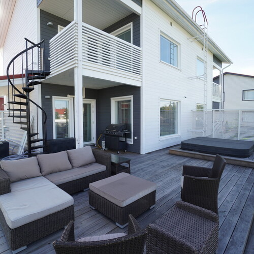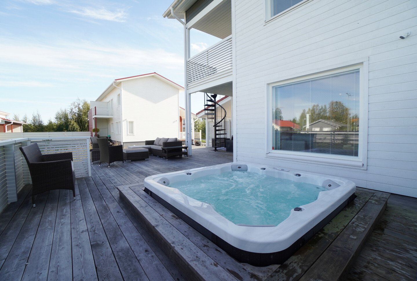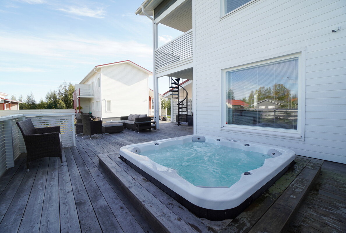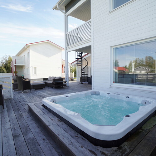 Terassilla myös poreamme, jossa voit nauttia omassa rauhassasi.