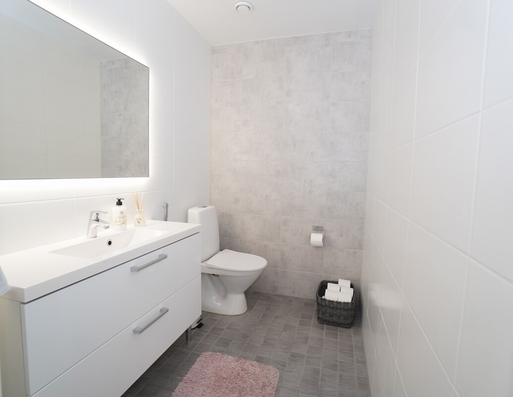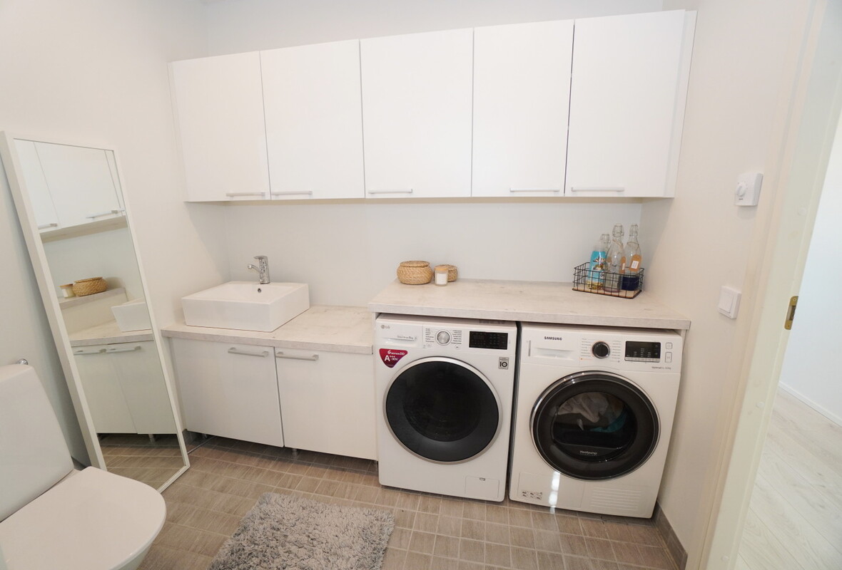 Varusteet: pesukoneliitäntä, lattialämmitys, lattiakaivo, pesuallas