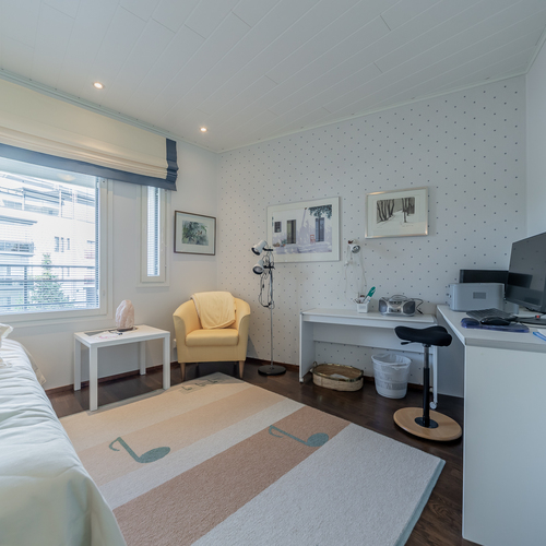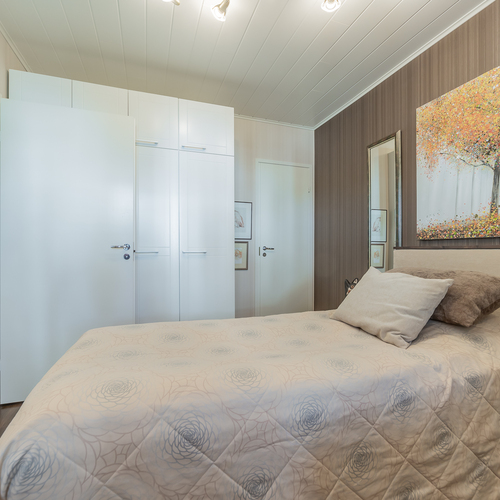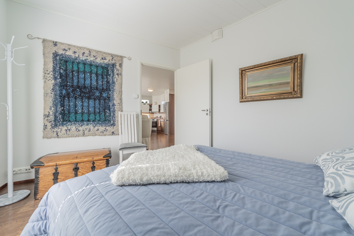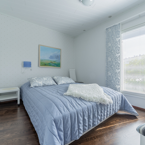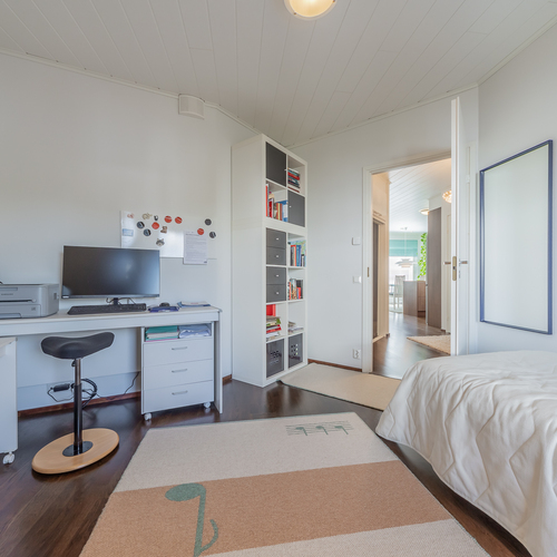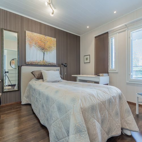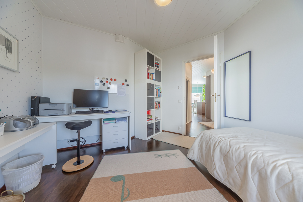 Asunnossa on kolme makuuhuonetta, yhdessä kaapiston lisäksi ikkunallinen vaatehuone, lisäksi toisessa on hyllykkö tarpeellisten tavaroiden säilytykseen.