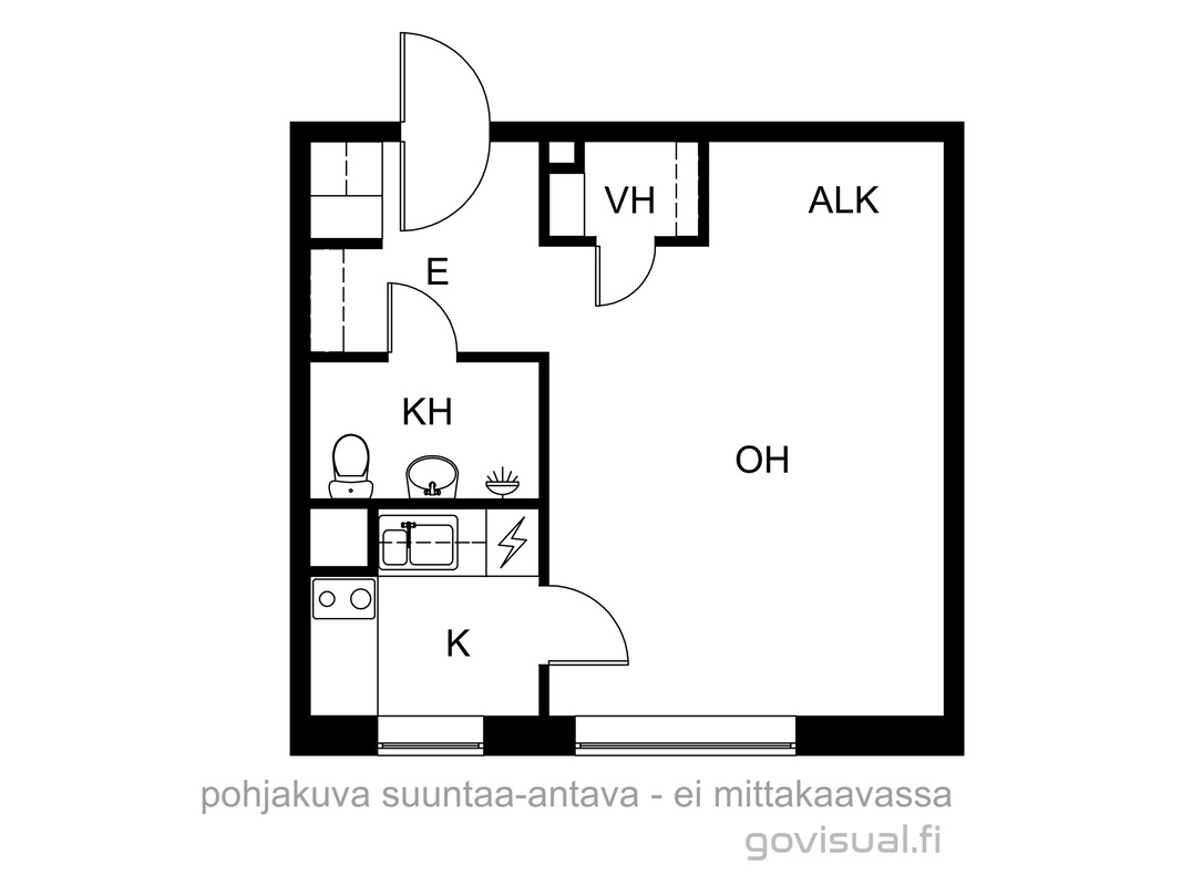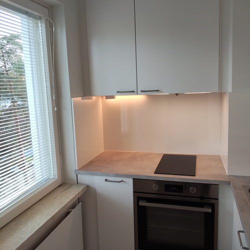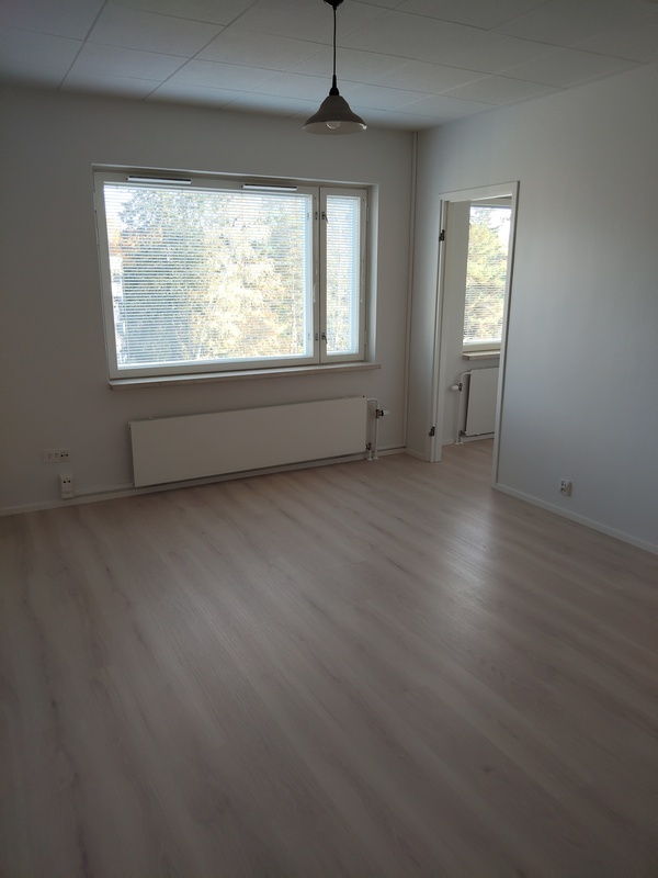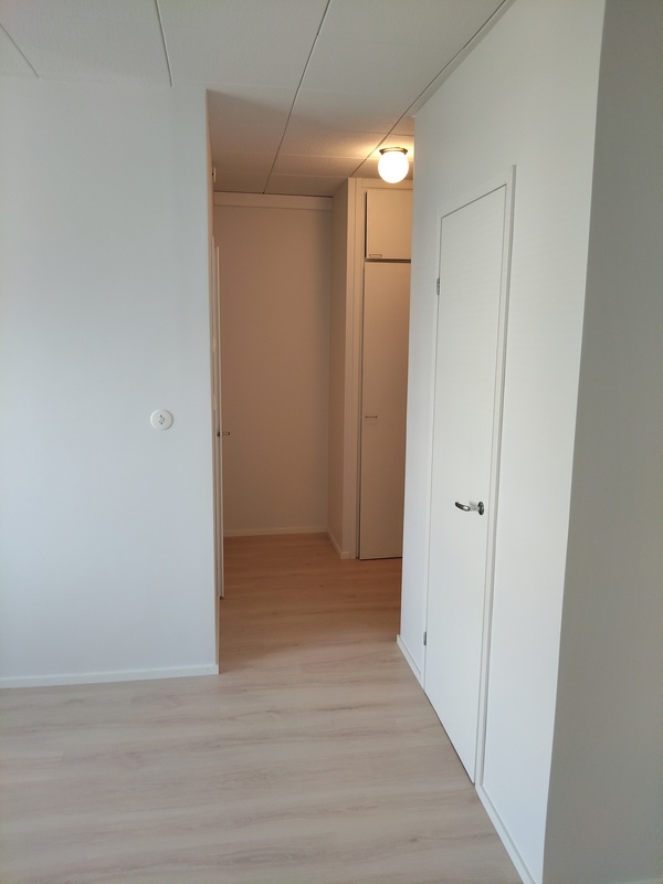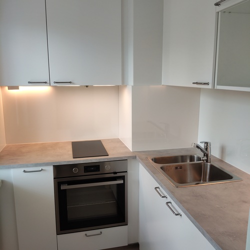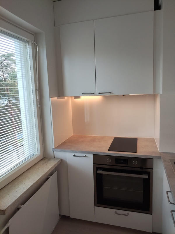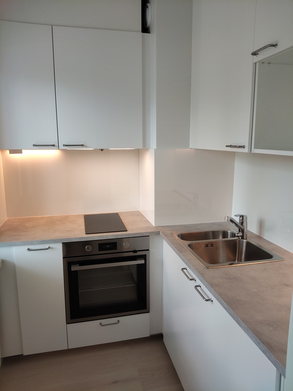 Kokonaan uusittu kaapistoineen ja kodinkoneineen: Induktioliesi, liesituuletin (suodatin), jääkaappi. Laminaattitaso. Lattia laminaattia, seinät ja katto maalattu. Ikkuna jossa sälekaihtimet.