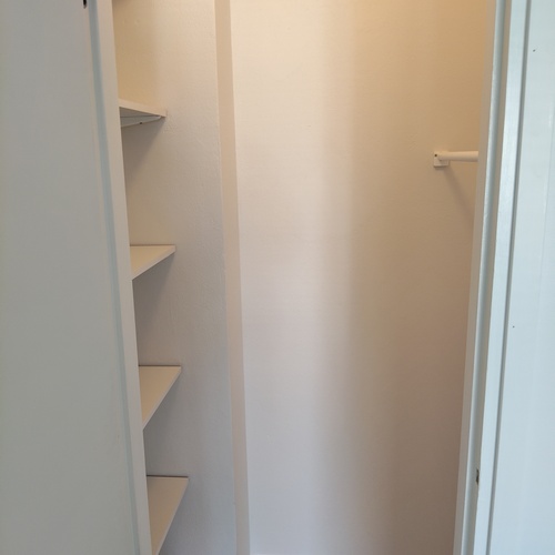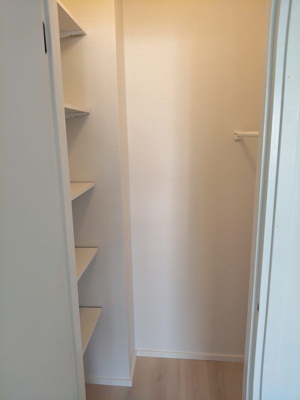Kaapisto, lattia laminaattia, seinät ja katto maalattu.