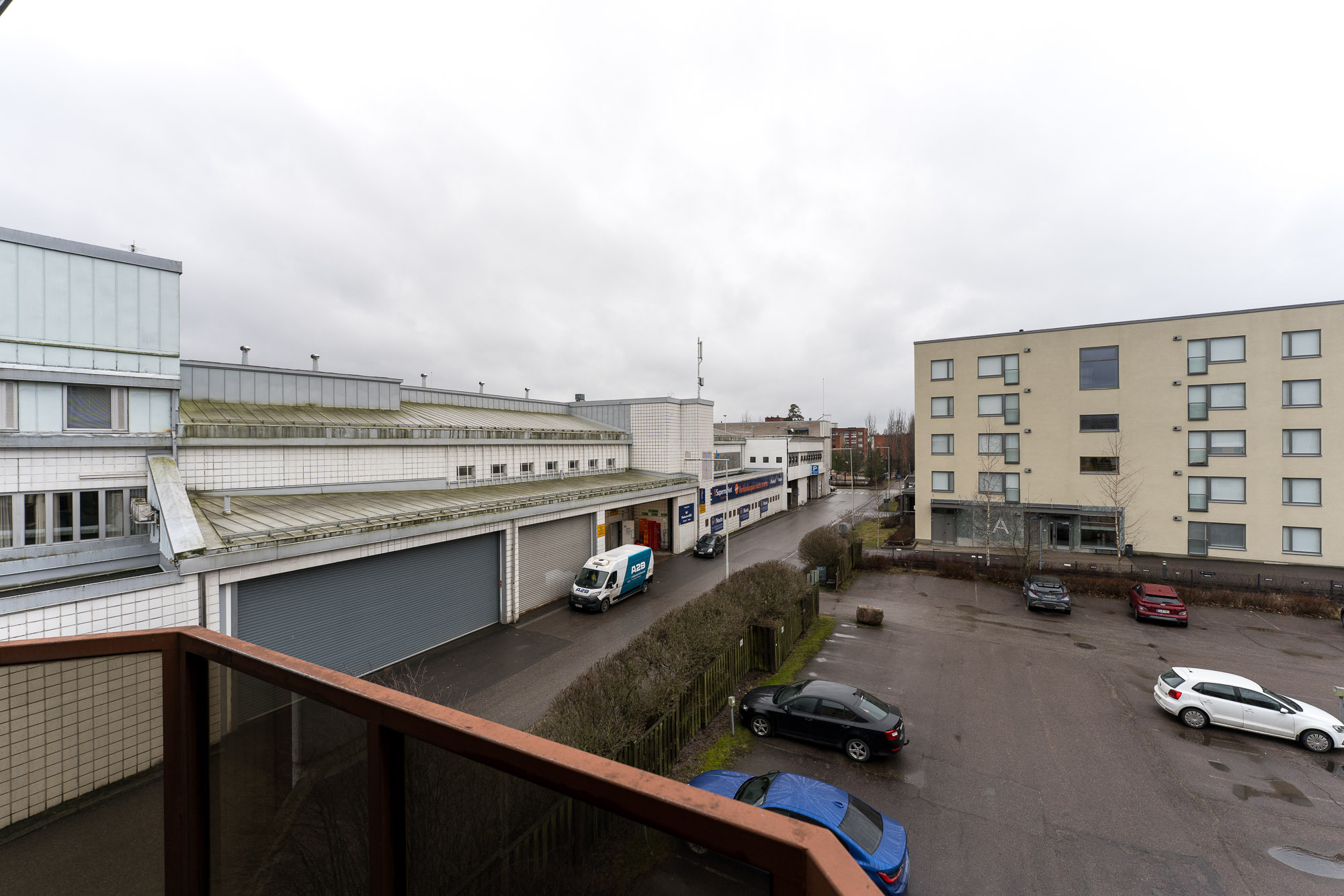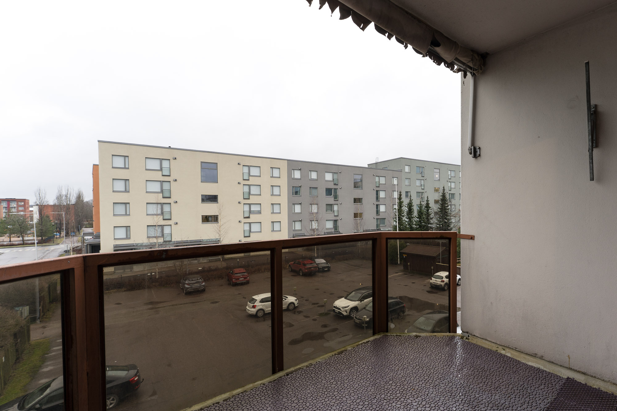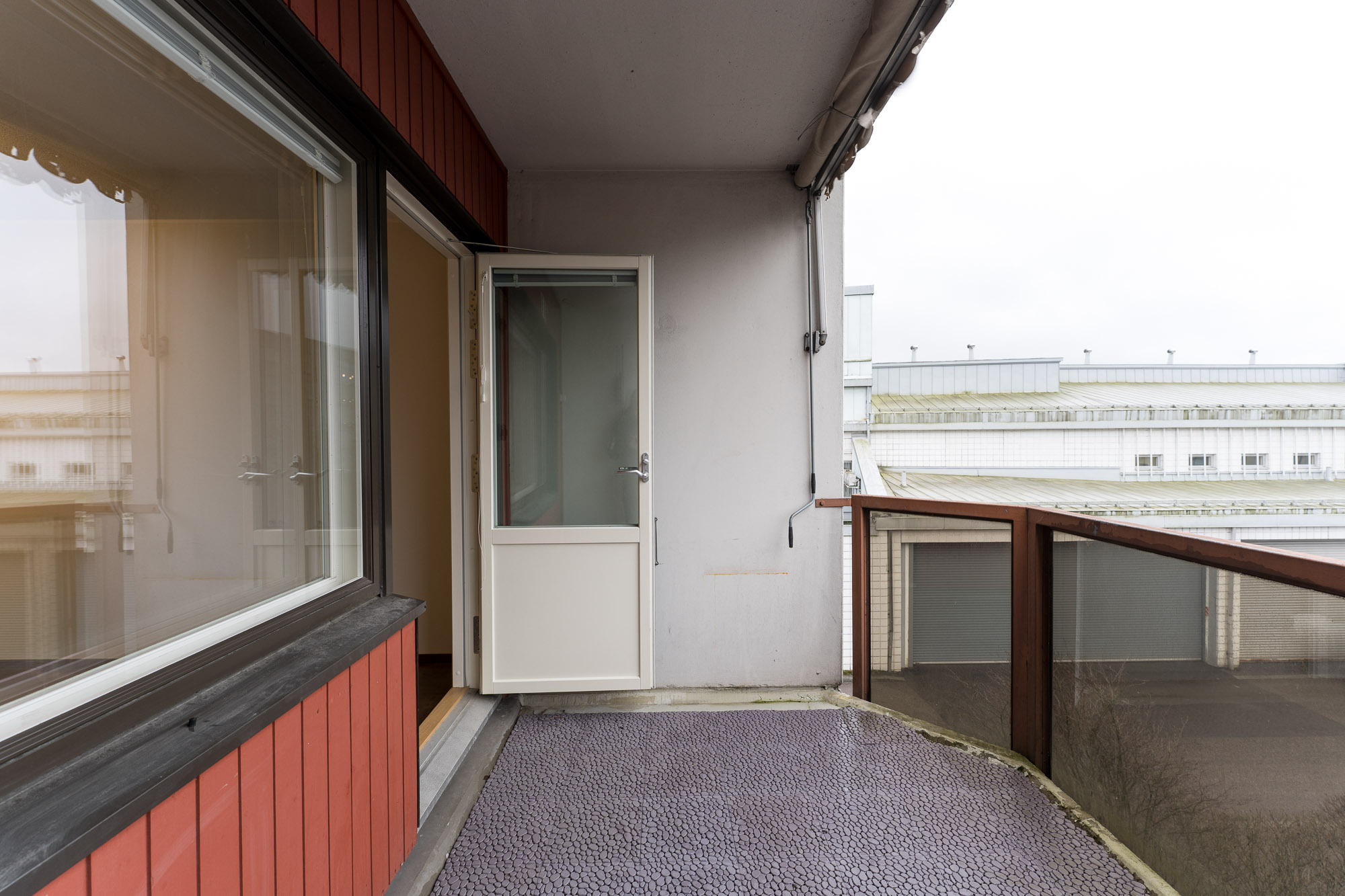 Reilun kokoinen parveke ilta-auringon suuntaan.
