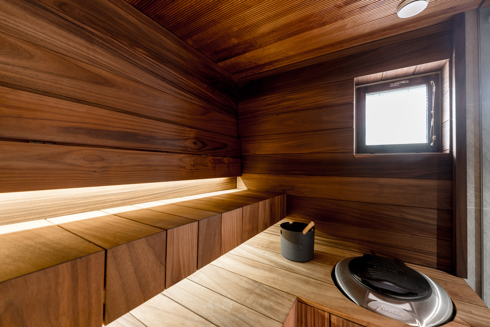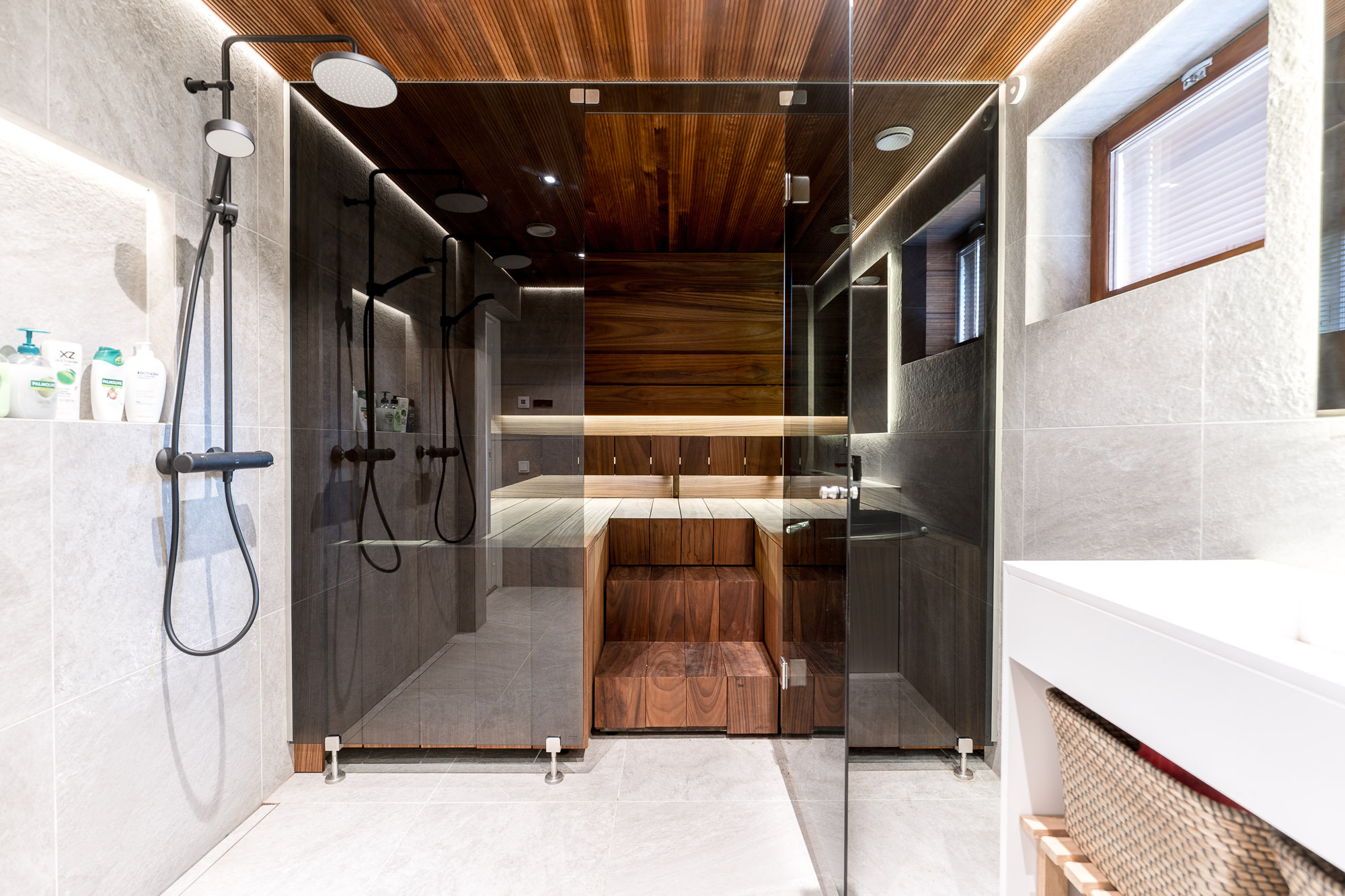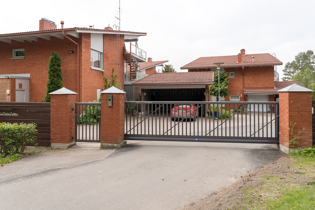 Keittiössä Noblessa-kalusteet ja komposiittitasot yhdistyvät käytännöllisyyteen integroitujen laitteiden kanssa. Kolme makuuhuonetta tarjoavat mukavan tilan perheelle, kun taas valoisa walk-in-closet ja kaksi kylpyhuonetta tuovat arkeen sujuvuutta. Oma sauna pesu- ja kuivaustiloineen tekee kodista täydellisen rentoutumisen paikan.