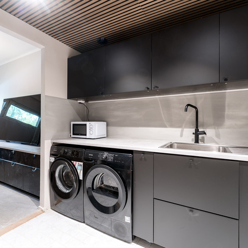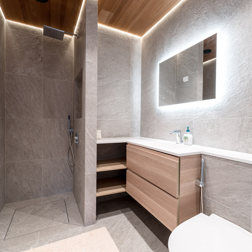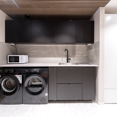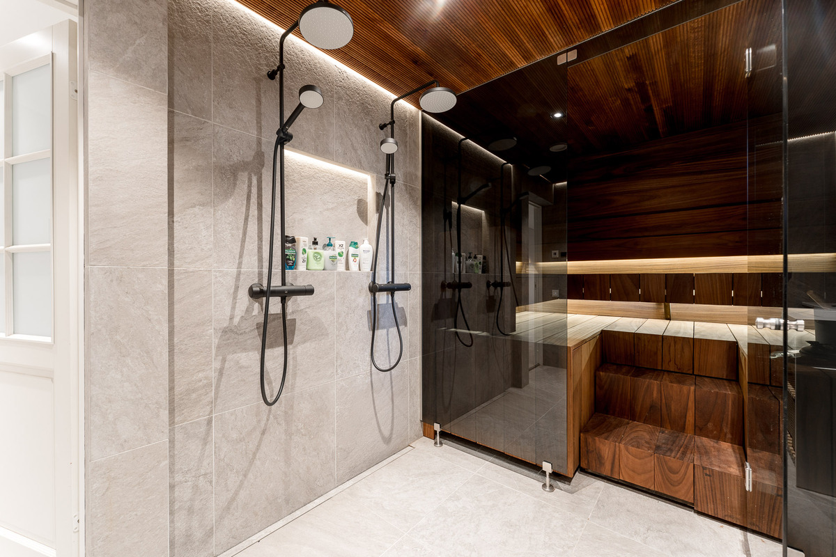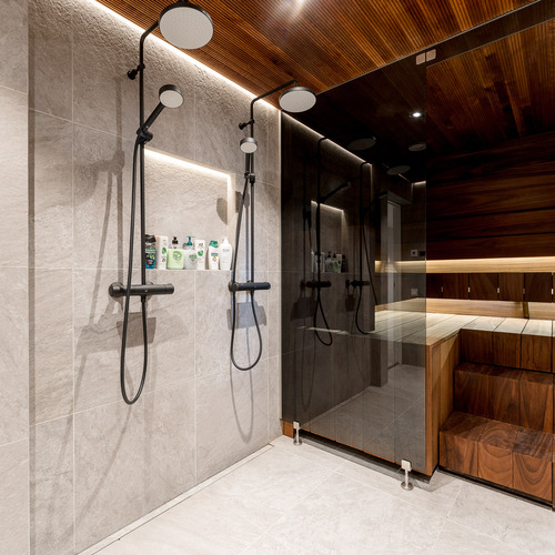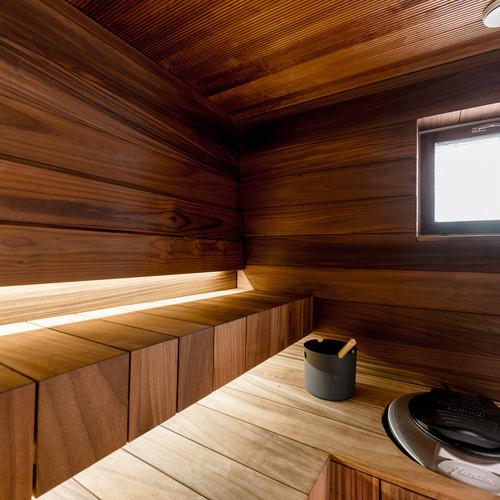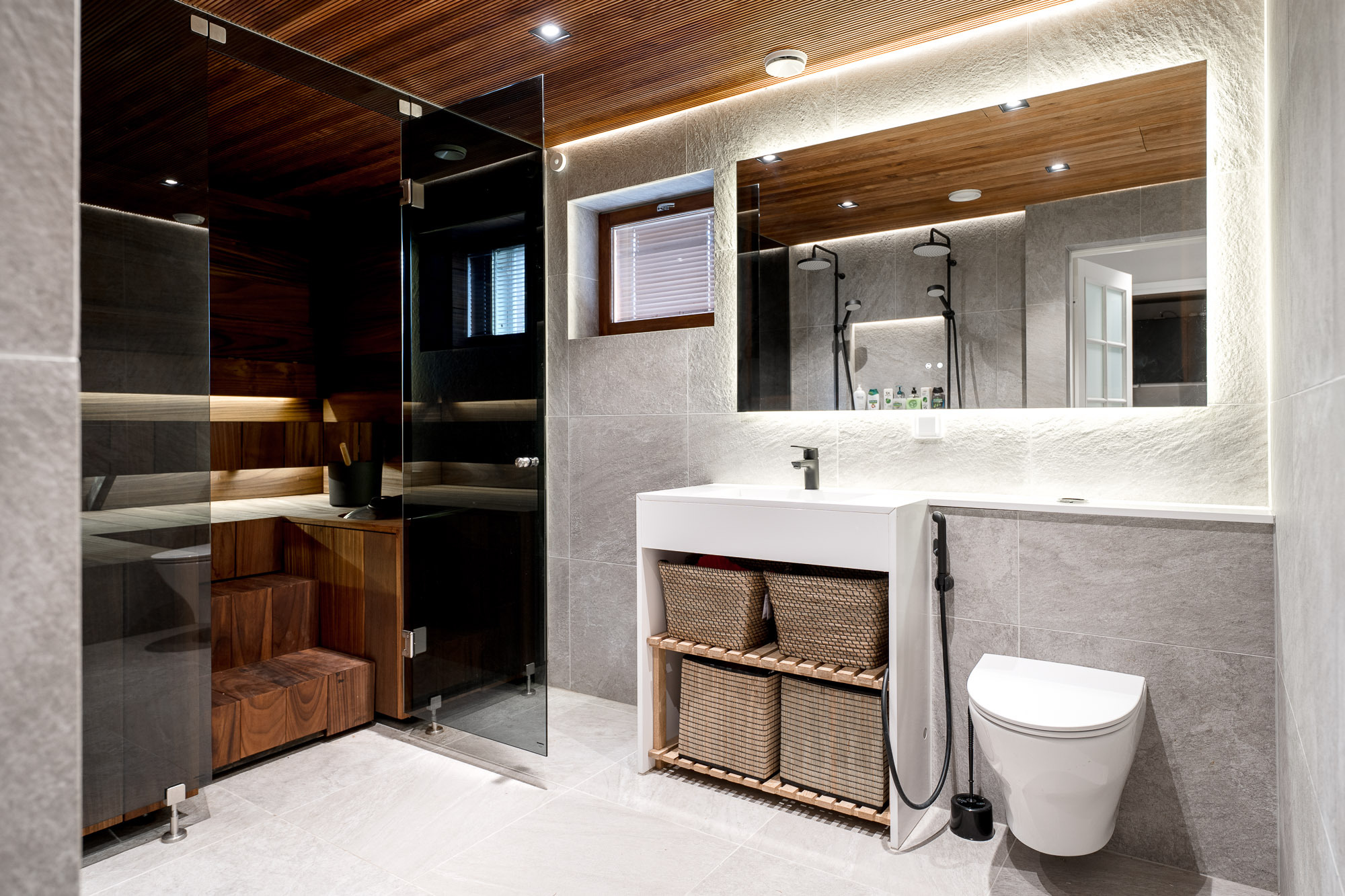 Keittiössä Noblessa-kalusteet ja komposiittitasot yhdistyvät käytännöllisyyteen integroitujen laitteiden kanssa. Kolme makuuhuonetta tarjoavat mukavan tilan perheelle, kun taas valoisa walk-in-closet ja kaksi kylpyhuonetta tuovat arkeen sujuvuutta. Oma sauna pesu- ja kuivaustiloineen tekee kodista täydellisen rentoutumisen paikan.