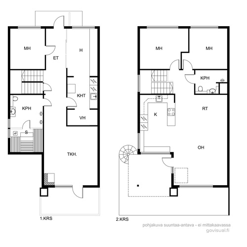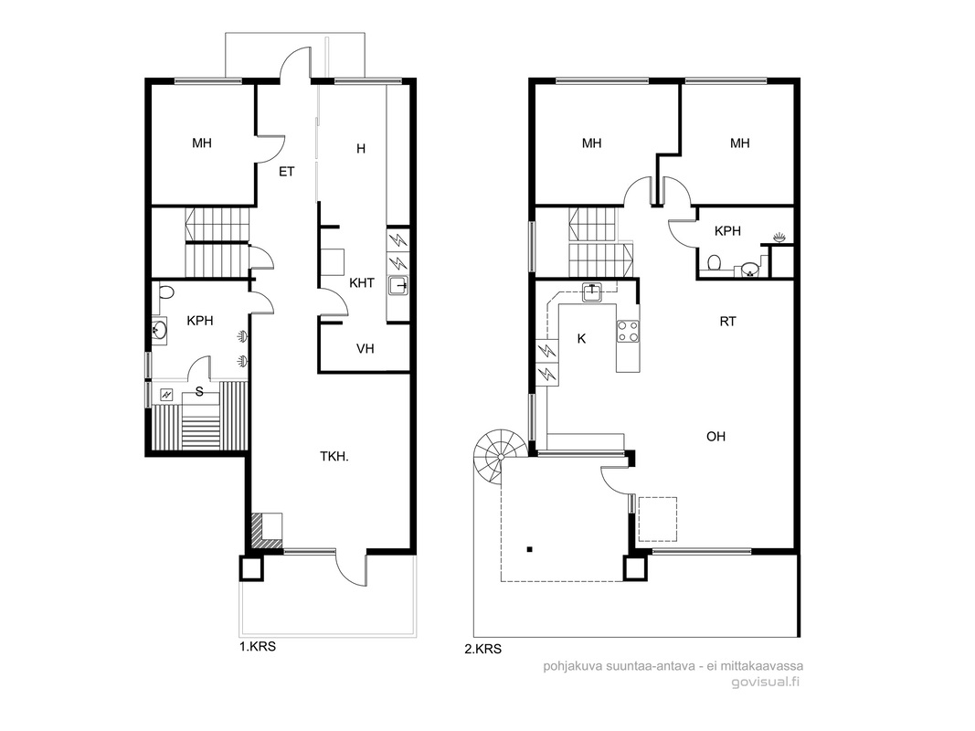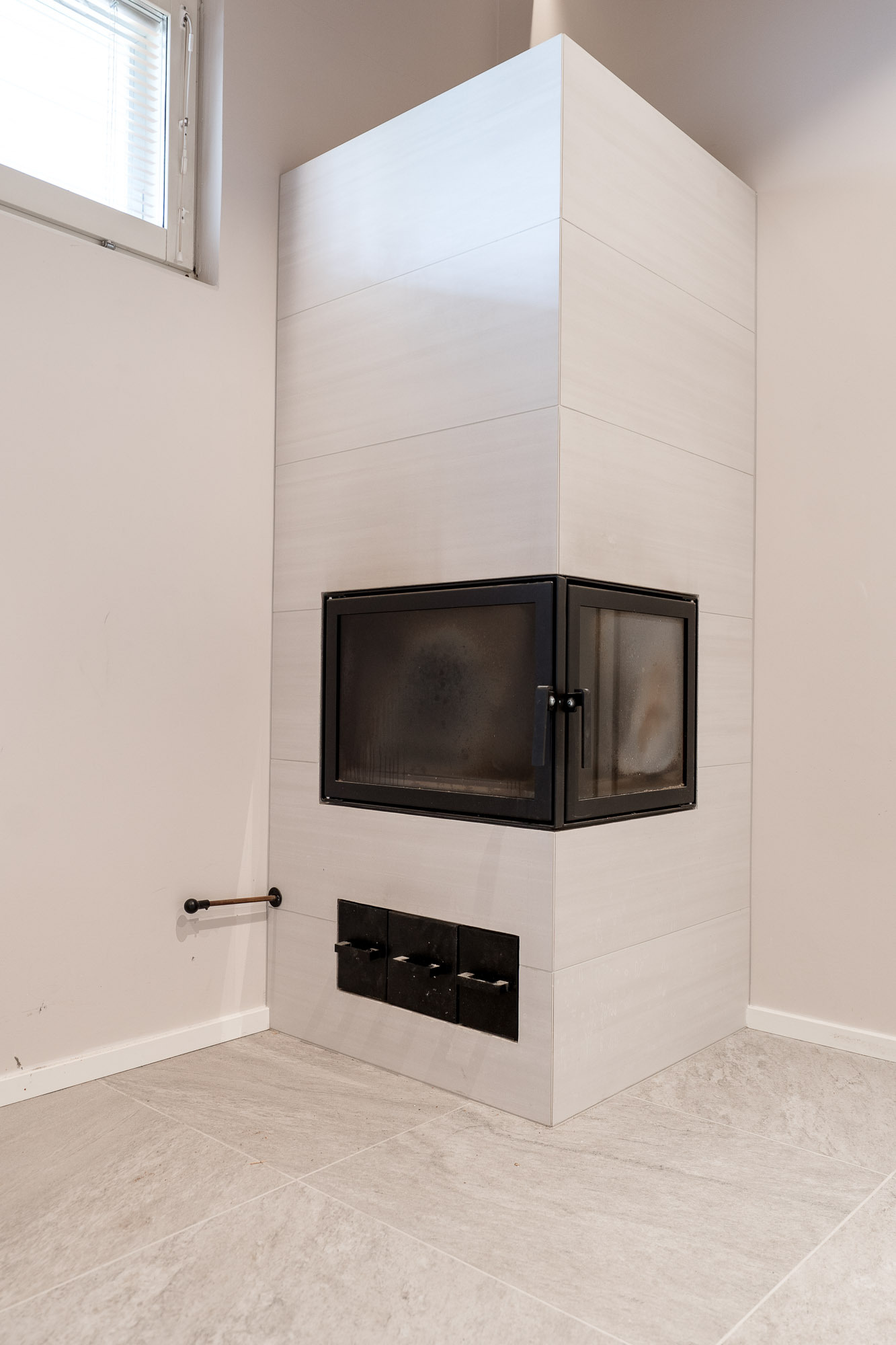 Ilmalämpöpumppu, takka, sähköpatterit, lattialämmitys oh, takkah., eteinen ja märkätilat.