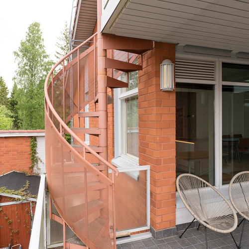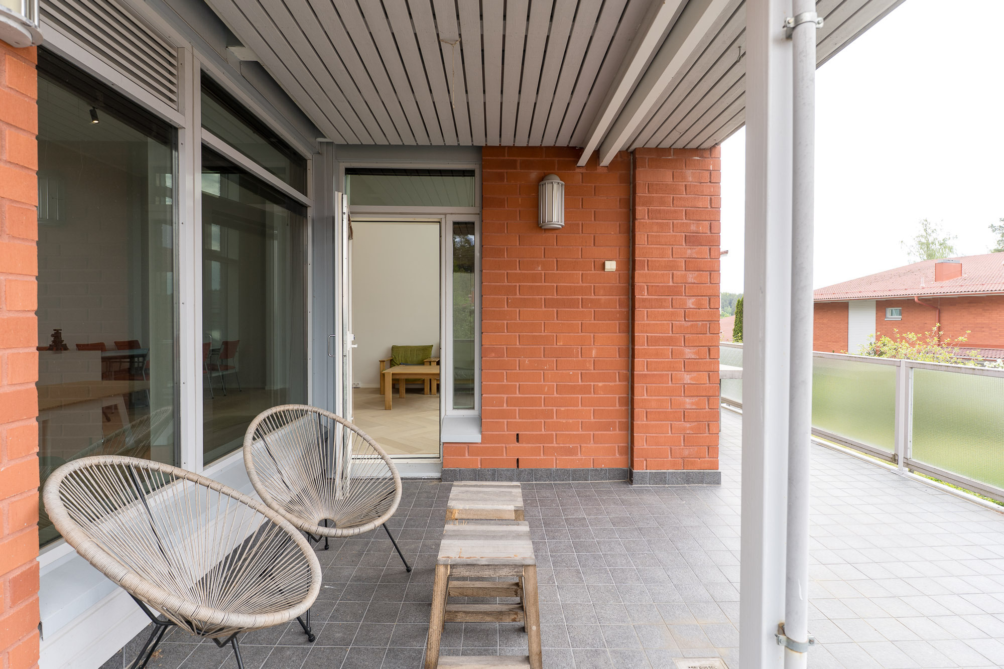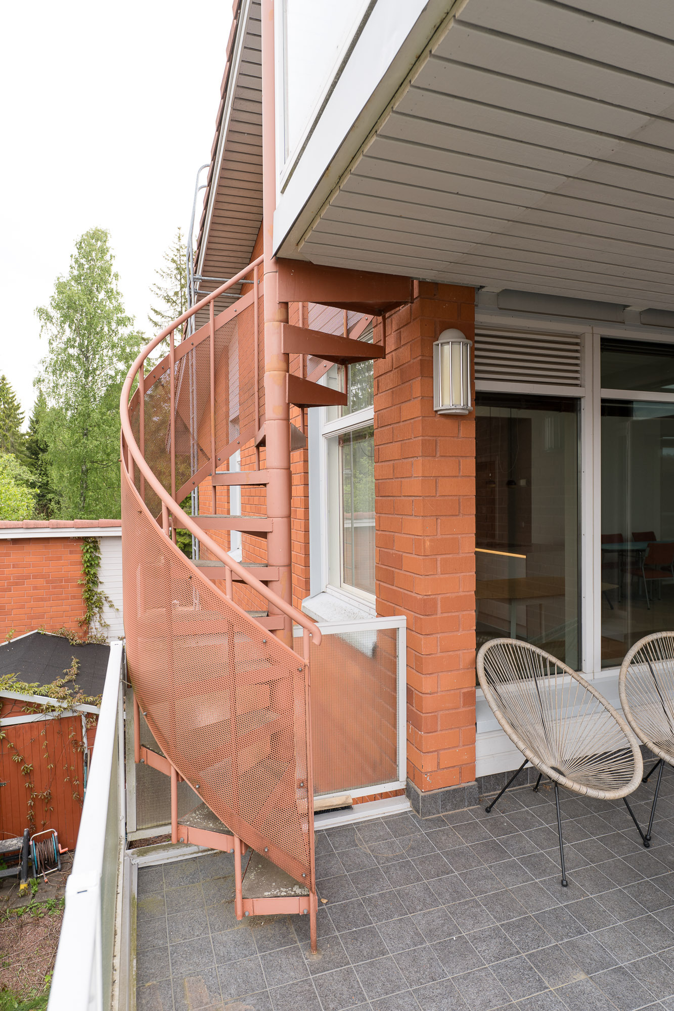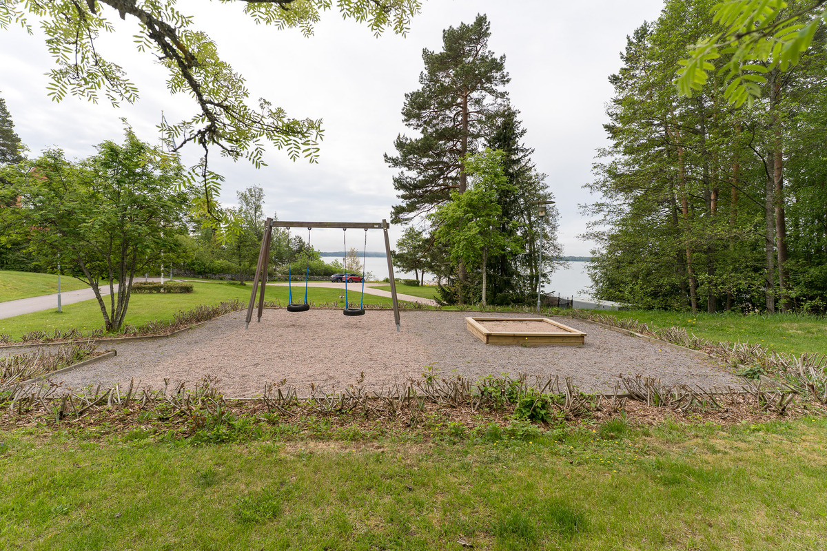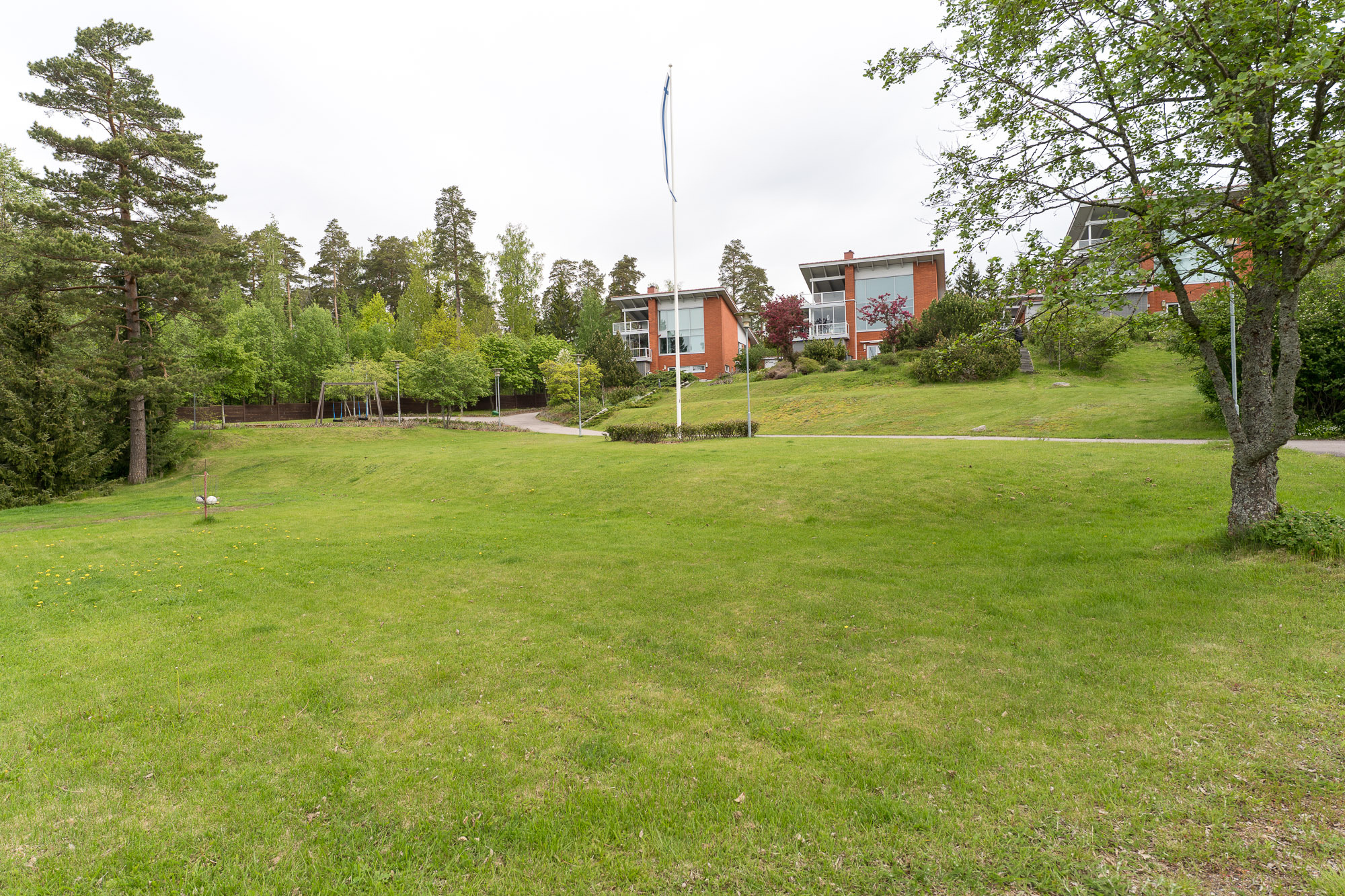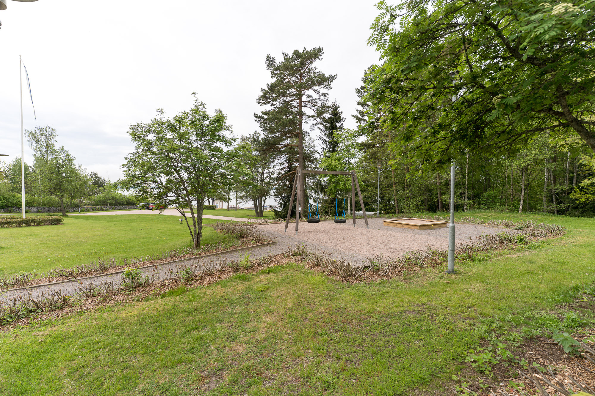 Kauniisti kunnostettu piha tarjoaa yksityisyyttä ja tilaa ulkona oleskeluun. Taloyhtiön piha-alueisiin kuuluvat leikkipaikka ja oleskelualueet, mikä tekee ympäristöstä viihtyisän kaikenikäisille asukkaille.