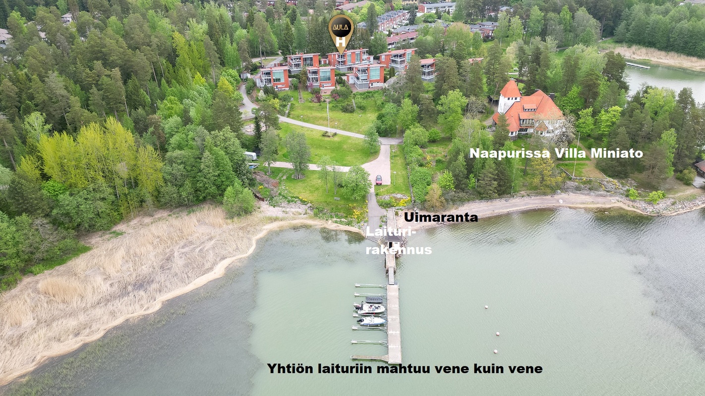 Miniatontiellä sijaitseva kolmen makuuhuoneen koti tarjoaa harvinaisen yhdistelmän rauhallista meren läheisyyttä ja kaupungin palveluja. Taloyhtiön oma hiekkaranta Itämeressä mahdollistaa kesäiset uinnit, oman venepaikan ja veneilyhetket aivan kotiovelta.